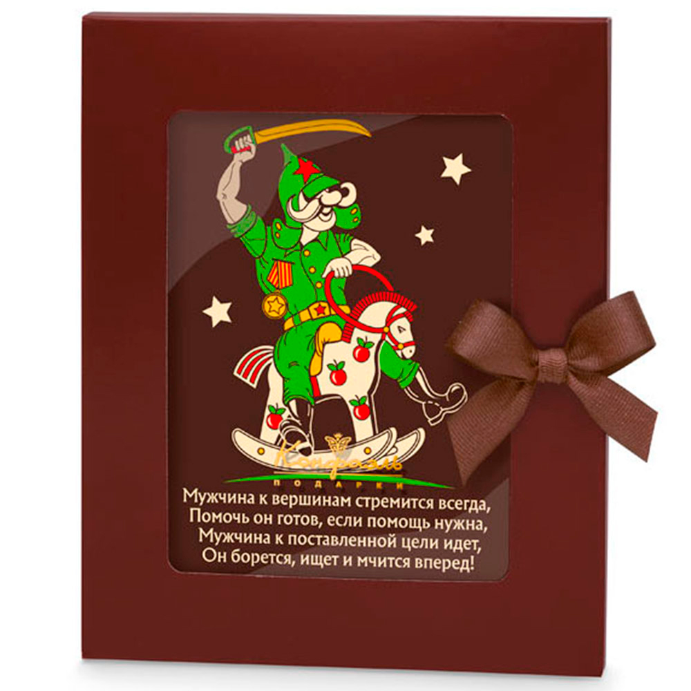 А что может быть слаще шоколадной медали, подаренной любимыми людьми? Шоколадная открытка «С Днем Защитника Отечества» – очень трогательный и приятный подарок к 23 февраля.