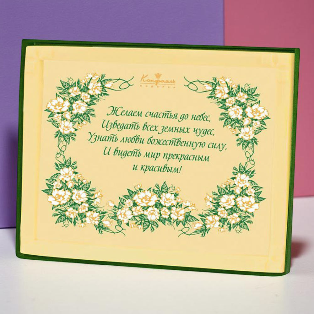 Мы всегда желаем счастья всем своим родным, знакомым и коллегам по работе. Изысканная пластина из белого шоколада отлично подчеркнет наше доброе отношение и станет приятным подарком друзьям и близким. Шоколад белый фигурный украшенный.